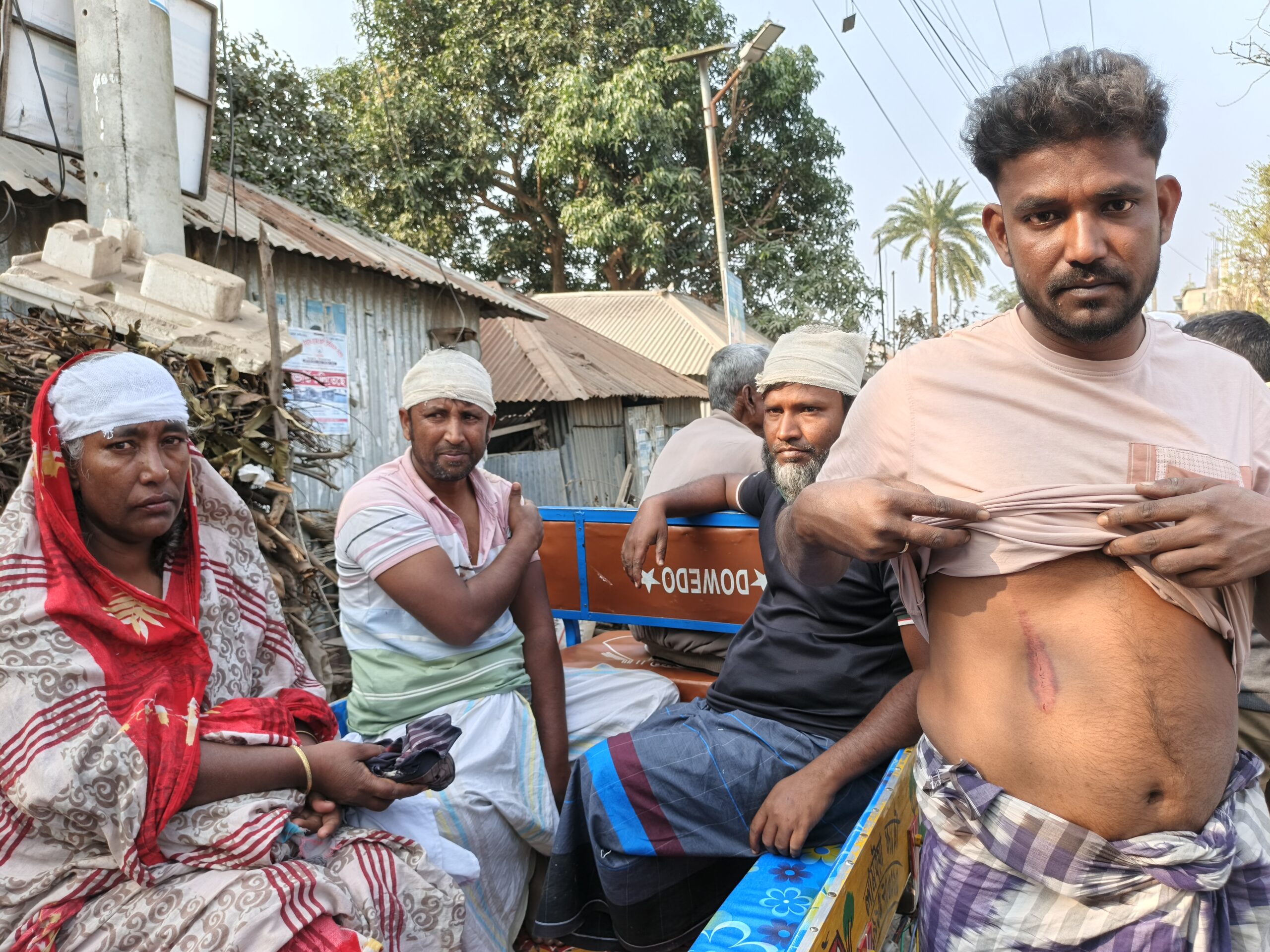 সিরাজগঞ্জের তাড়াশে দেশীগ্রাম ইউনিয়নের জন্তীহার গ্রামে পরান পুকুর সংলগ্ন ভিটায় শুক্রবার দুপুরে জমি-জমা বিষয়ে সালিশি বৈঠকে সংঘর্ঘে প্রতিপক্ষের হামলায় নারীসহ ৫ জন আহত হয়েছেন। জানাগেছে, বৈঠকে জমি-জমার সকল কাজ পত্র বাদি-বিবাদি বৈঠকে উপস্থাপন করলে বিচারকগন উক্ত পেপার্স দেখে রায় দেয়। উভয় পক্ষ রায় মেনে নিয়ে বাড়ি ফেরার পথে আব্দুর রাজ্জাকের হুকুমে, আল আমিন,আব্দুল আজিজ, শুভল, ইসা হক, মস্তফা, সাদ্দাম, মনিরুল, হাফিজুর, শামিম ও লিটন দেশীয় অস্র, লাটি শোটা দিয়ে অতর্কিত ভাবে প্রতি পক্ষের উপর অাক্রমন করে। এতে আব্দুল হান্নান, রুবেল হসেন, আরিফুল ইসলাম, মেরিনা খাতুন ও রহিমা খাতুন গুরতর অাহত হন। আহতদের তাড়াশ উপজেলা স্বাস্থ্য কমপ্লেক্সে প্রাথমিক চিকিৎসা দিয়ে উন্নত চিকিৎসার জন্য সিরাজগঞ্জ সদর হাসপাতালে পাঠানো হয়।