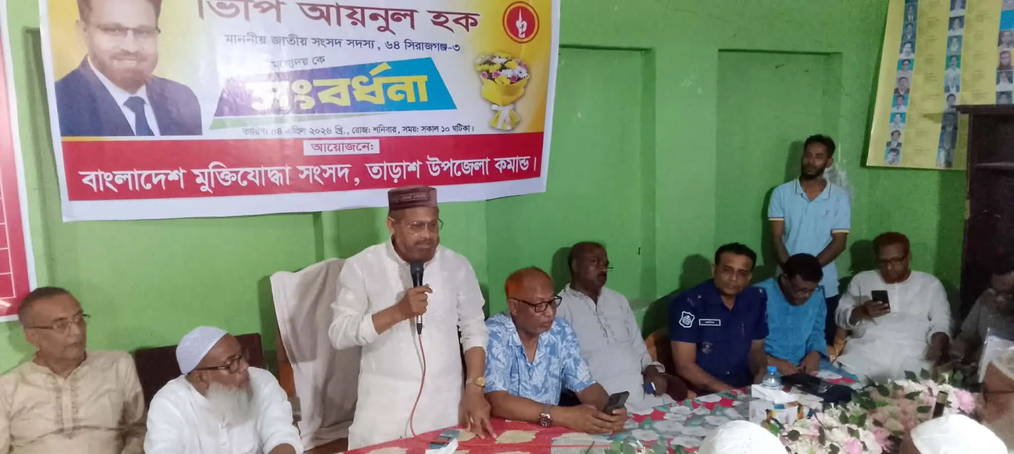 সিরাজগঞ্জ -৩ আসনের নব নিবার্চিত জাতীয় সংসদ সদস্য ভিপি আয়নুল হককে সংবর্ধনা দেয়া হয়েছে। বাংলাদেশ মুক্তিযোদ্ধা সংসদ, তাড়াশ উপজেলা কমান্ড ওই সংবর্ধনা অনুষ্ঠানের আয়োজন করেন।