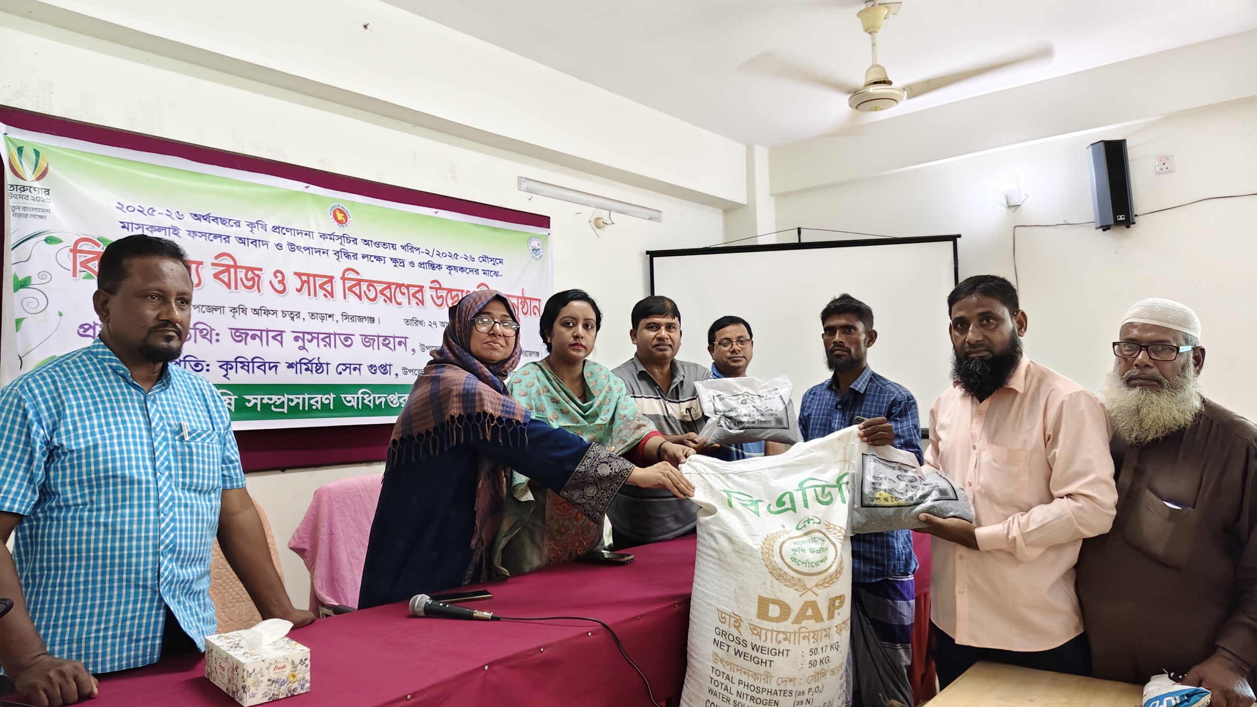 সিরাজগঞ্জের তাড়াশে ২০২৫-২৬ অর্থ বছরে কৃষি প্রণোদনা কর্মসূচির আওতায় খরিপ-২ মৌসুমে মাসকলাই ফসলের আবাদ ও উৎপাদন বৃদ্ধির লক্ষ্যে ৮০ জন ক্ষুদ্র ও প্রান্তিক কৃষকদের মাঝে বিনামূল্যে বীজ ও সার বিতরণের উদ্বোধন করা হয়েছে।