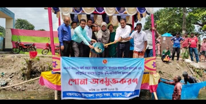 এ সময় জেলা মৎস্য কর্মকর্তা শাহিনুর রহমান বলেন, ২০২৫-২৬ অর্থ বছরের রাজস্ব বাজেটের আওতায় অভ্যান্তরিন জলাভূমিতে পোনা মাছ অবমুক্ত করা হলো। আপনাদের সার্বিক সহযোগীতায় পোনা গুলো মাছে পরিনত হলে উপজেলার মানুষের আমিষের চাহিদা অনেকটাই পূরণ হবে। পোনামাছ শিকার করা দন্ডনীয় অপরাধ। আপনারা ভূলেও এ কাজটি করবেন না। আসুন সবাই মিলে দেশটিকে মৎস্য সম্পদে ভরে তুলি।